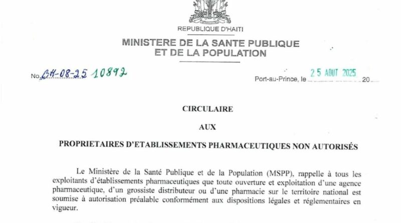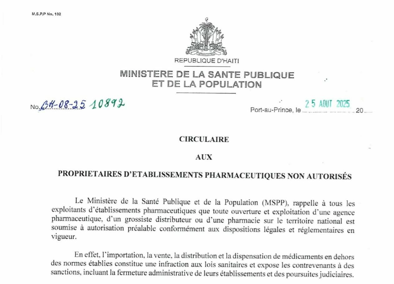 Read MoreLe Ministère de la Santé Publique et de la Population (MSPP) a publié une circulaire ce mardi 2 septembre 2025