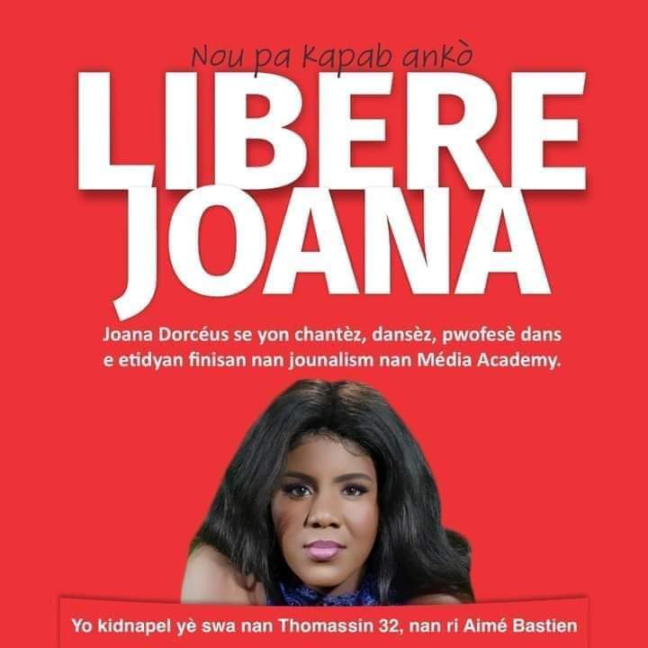 Les kidnappeurs ne chôment pas. Joana Dorceus est le nom de cette jeune danseuse, chanteuse, professeure de danse et étudiante finissante en journalisme qui a été enlevée à Thomassin le week-end écoulé.
