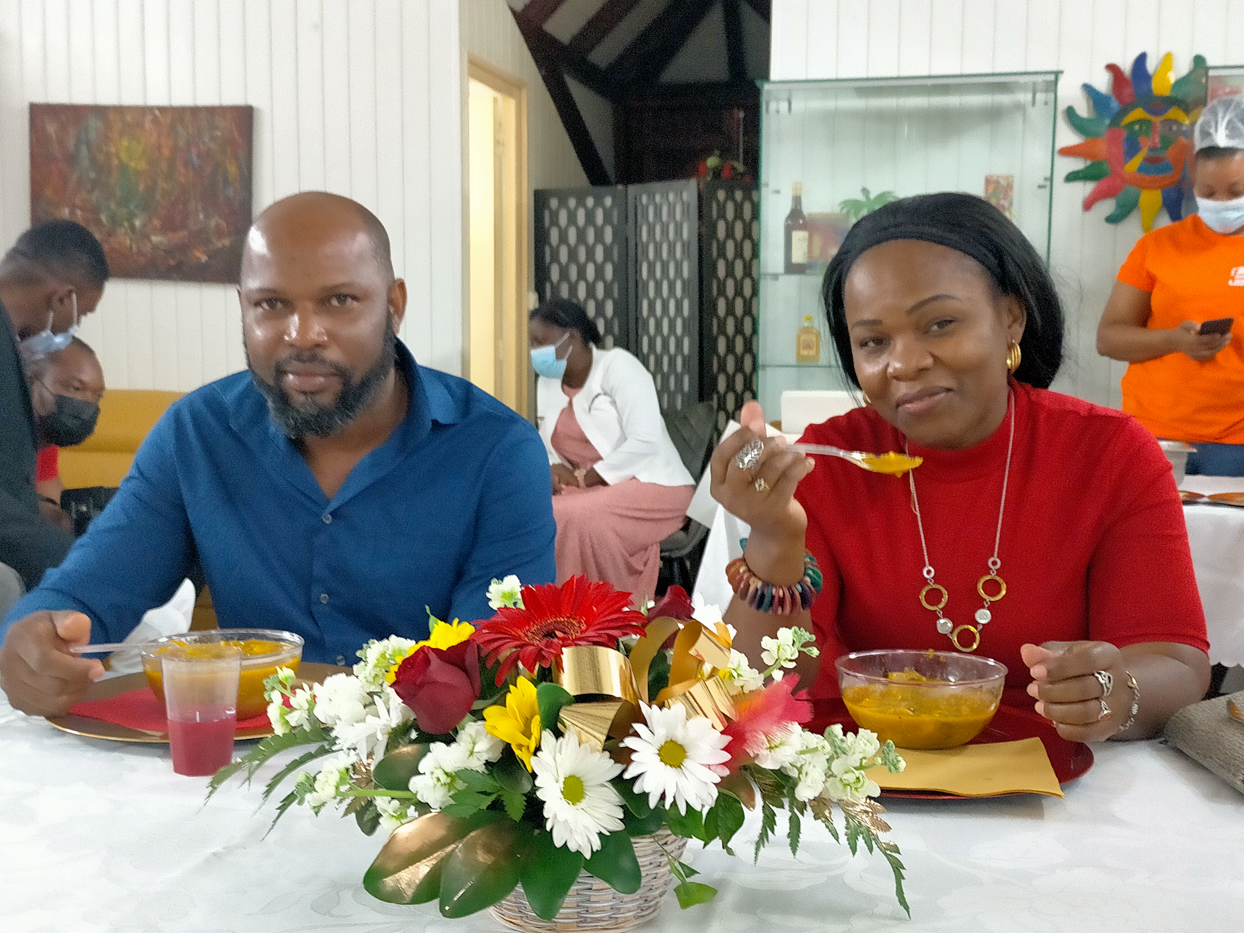 Suivi du service, un plateau servi avec la fameuse ” soup joumou” Soupe au Giraumon qui a été inscrite sur la liste du patrimoine culturel et immatériel de L’UNESCO le 16 décembre 2021.
