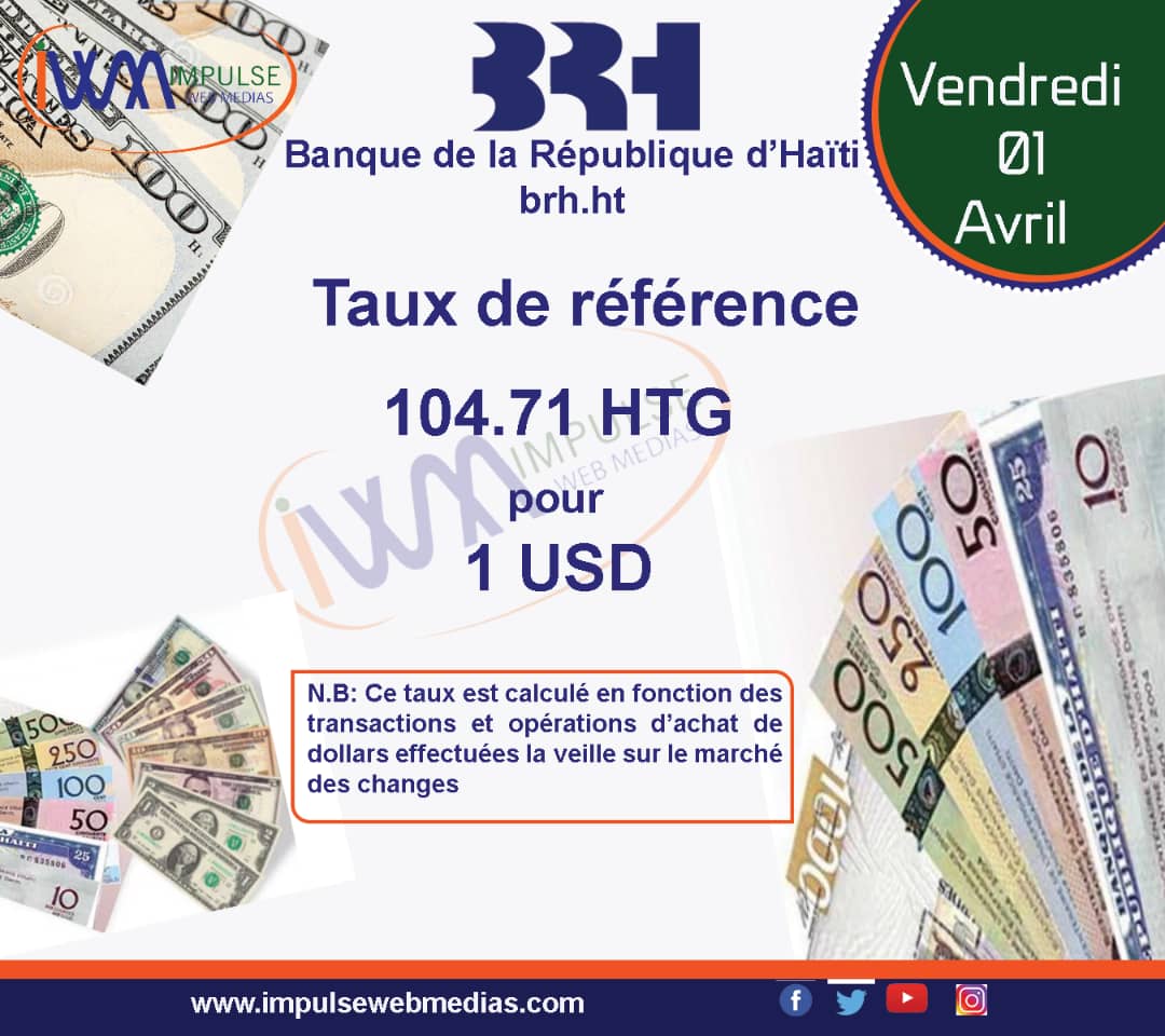 Impulse Web Medias vous présente chaque matin, le taux de référence de la Banque de la République d’Haiti (BRH).