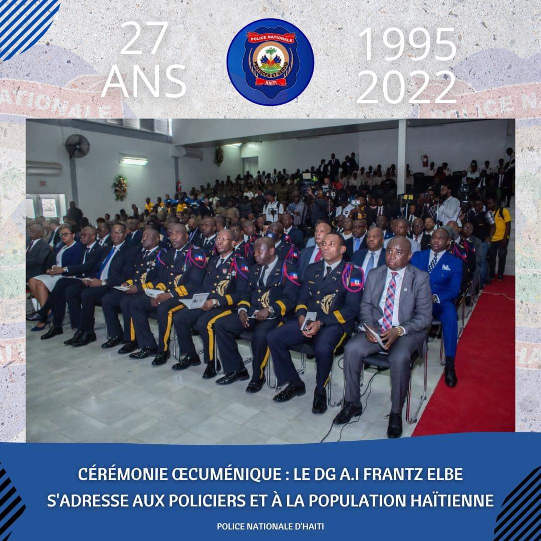 Marquée par une messe solennelle, cette célébration religieuse a été présidée par le Mgr Pierre André Dumas ainsi que des discours des autorités concernées. La cérémonie s’est déroulée en présence du DG a.i de la PNH Franzt ELBE, des membres du Haut commandement, des anciens Directeurs Généraux de la PNH, des représentants du corps diplomatique et consulaire, des parlementaires et des membres du gouvernement entre autres…