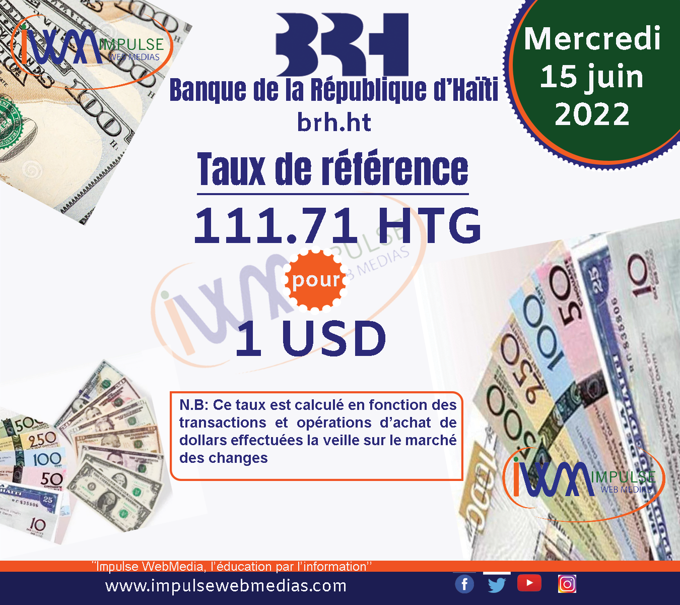 Impulse Web Medias vous présente chaque matin, le taux de référence de la Banque de la République d’Haïti (BRH).