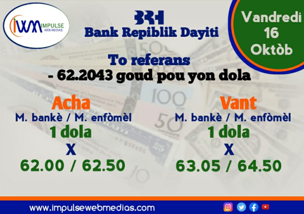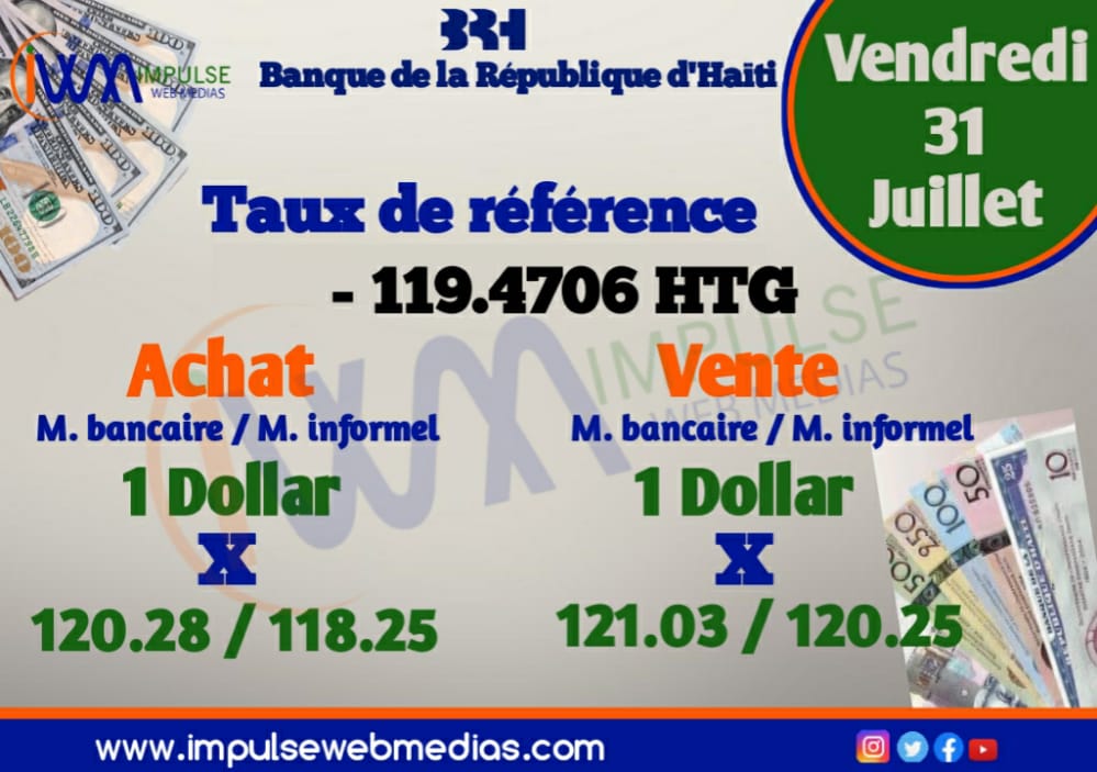 Impulse Web Medias vous présente chaque matin, le taux de référence de la Banque de la République d’Haïti (BRH).