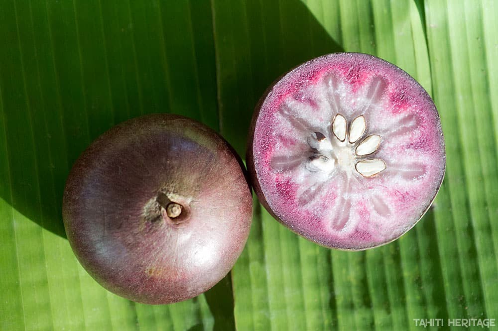 Le Caïmitier ou Pomme étoile fait partie de la même famille que le corossol, le cœur de bœuf et le rollinia, qui sont tous appelés Tapotapo au fenua.