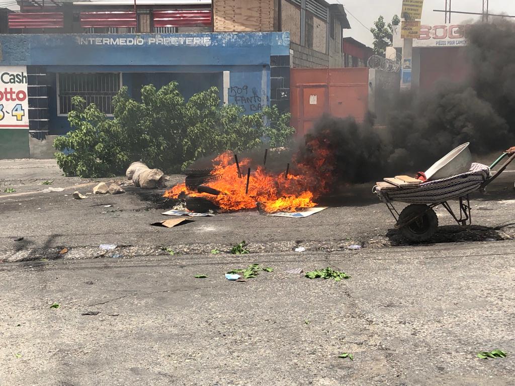 En effet, on pouvait constater des barricades avec des pneus enflammés sur la route de Delmas, Route de l’aéroport, à Christ-Roi, Lalue, Bois-Verna, et à Canapé Vert. Les protestataires dénoncent ce qu’ils qualifient de « marché noir » dans la vente du carburant. Le Terminal Varreux a cessé de fonctionner suite à la situation de tension qui règne à Cité Soleil. « Tout ponp fèmen poutan alantou ponp yo galon gaz ap vann 1500 goud » dénoncent -ils. Dans certains endroits de la capitale, des jets de pierres et des tirs nourris ont été entendus.