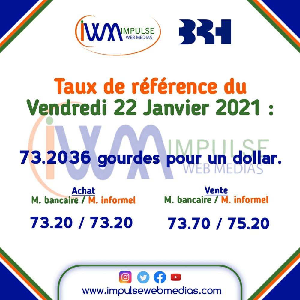 Impulse Web Medias vous présente chaque matin, le taux de référence de la Banque de la République d’Haïti (BRH).