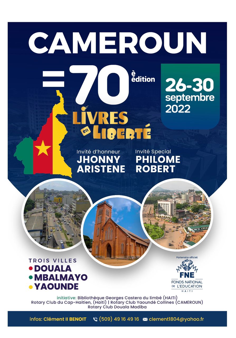 Dans moins d’un mois, la foire Livres en Liberté initiée par la Bibliothèque Georges Castera du Limbé entamera sa 3e escale sur le sol africain sur invitation de Rotary Club Yaoundé Collines et le Rotary Club Douala Madiba.