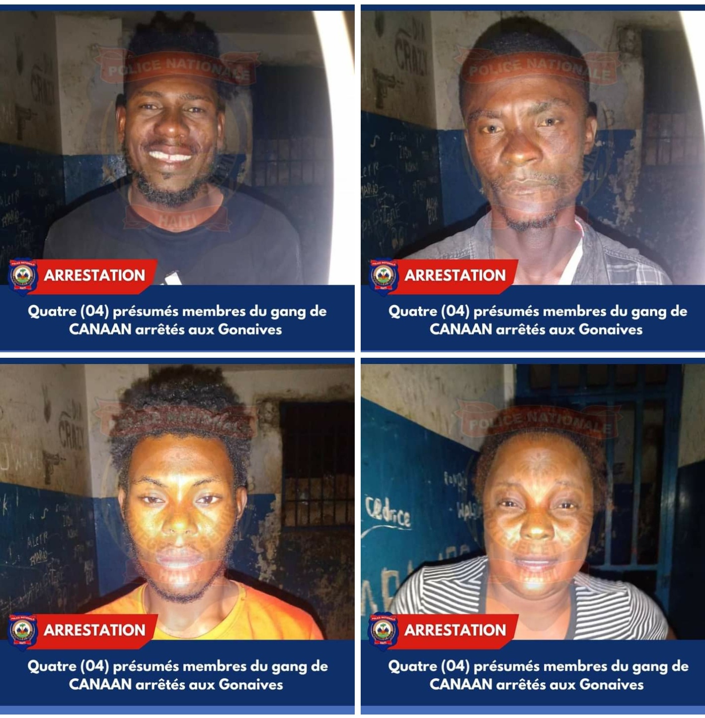 La police Nationale d’Haïti informe sur sa page Facebook avoir mis la main au collet de quatre (04) individus faisant partie du groupe de gang de Canaan , le samedi 21 janvier, aux Gonaïves. Ils ont été appréhendés pour leur implication présumée dans des activités criminelles.