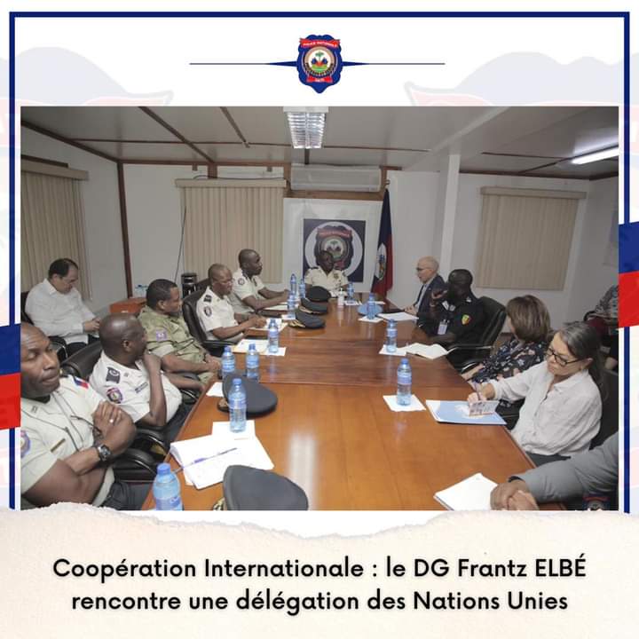 Le Directeur Général de la Police Nationale d’Haïti, Frantz ELBÉ, s’est entretenu jeudi 9 février 2023, avec une délégation des Nations Unies composée notamment du Haut-Commissaire des Nations Unies aux droits de l’homme M. Volker Türk, de la Représentante Spéciale du Secrétaire Général des Nations Unies en Haïti Mme Helen La Lime, du Commandant de la UNPOL Papa Samba MBODJ et du Conseiller Principal de Police/BINUH M. Jaime VIGIL, a informé la PNH sur sa page Facebook qui n’a toutefois pas précisé le lieu de cette rencontre.