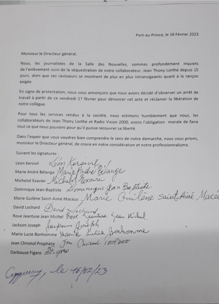 Pour la libération de leur collègue Jean Thony Lorthé et ses deux proches, les journalistes de Radio Vision 2000 continuent de hausser le ton, en observant un arrêt de travail à partir de ce vendredi.