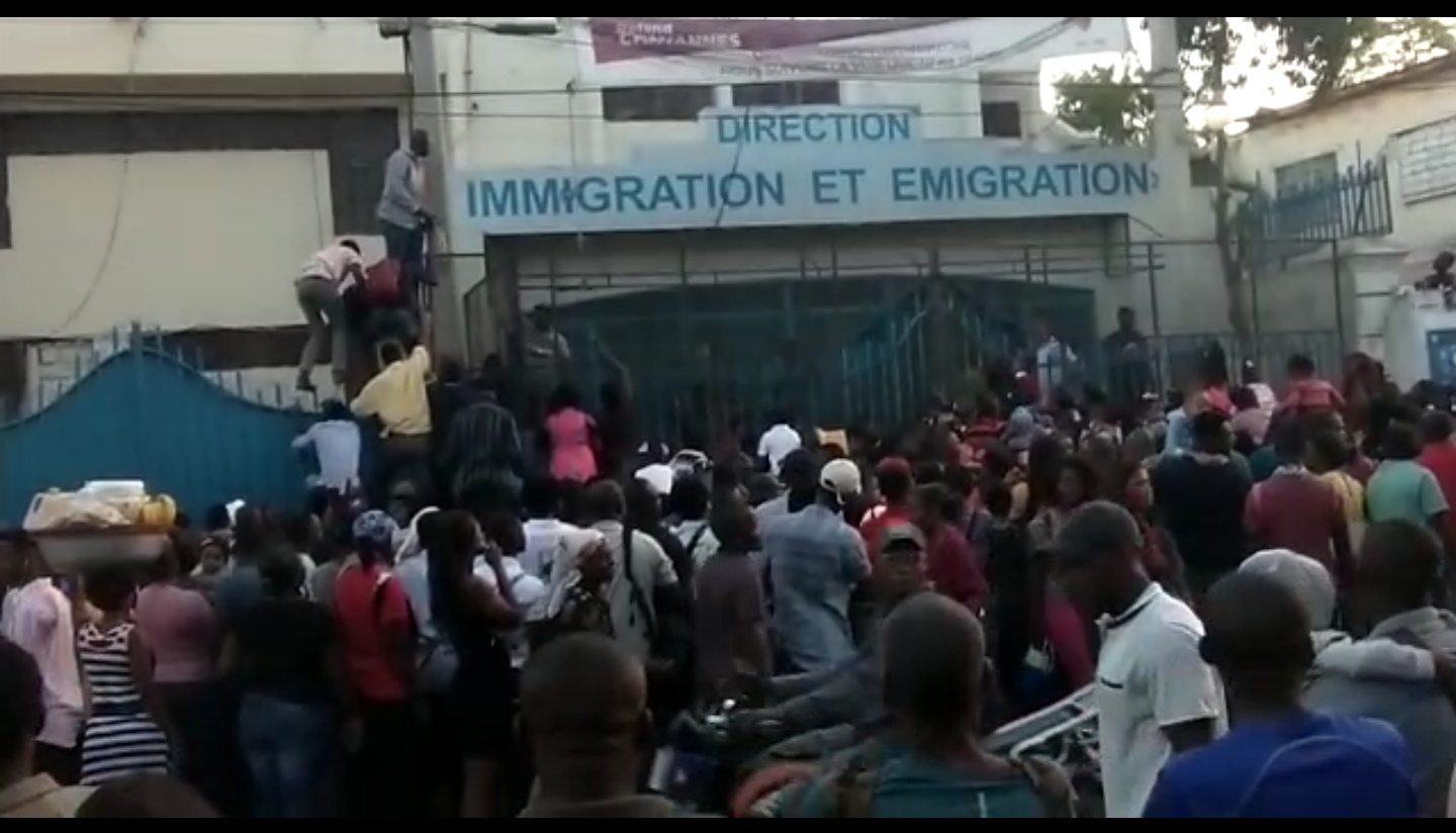 Dans la matinée de ce samedi 18 février, la situation était hors du commun au bureau Central de l’immigration et de l’Émigration situé à Lalue. En présence du directeur technique de ce centre en l’occurrence M. Jean Osselin LAMBERT, des enfants et femmes enceintes à l’instar des jeunes femmes et garçons grimpaient la barrière principale de hauteur d’environ 15 pieds dans l’espoir de déposer leurs documents pour l’obtention de passeports, a constaté un reporteur d’Impulse WebMedias.