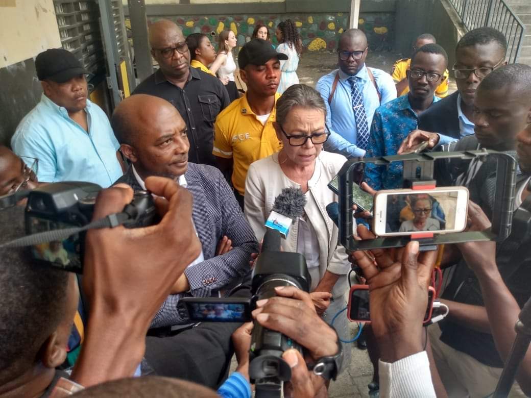 Lors de cette visite visant à soutenir notamment du point de vue psychologique, cet établissement scolaire public lourdement affectée par les dernières scènes de violence enregistrées à Canapé-vert ainsi que dans la zone de Turgeau, le titulaire du MENFP s’est fait accompagné de la représentante spéciale adjointe du secrétaire général des Nations Unies en Haïti, Mme Ulrika Richardson, du représentant de L’UNICEF en Haïti, Bruno Maes, des agents de la police (Edupol), de deux membres de l’Association Haïtienne de Psychologie ( AHPSY) entre autres…..