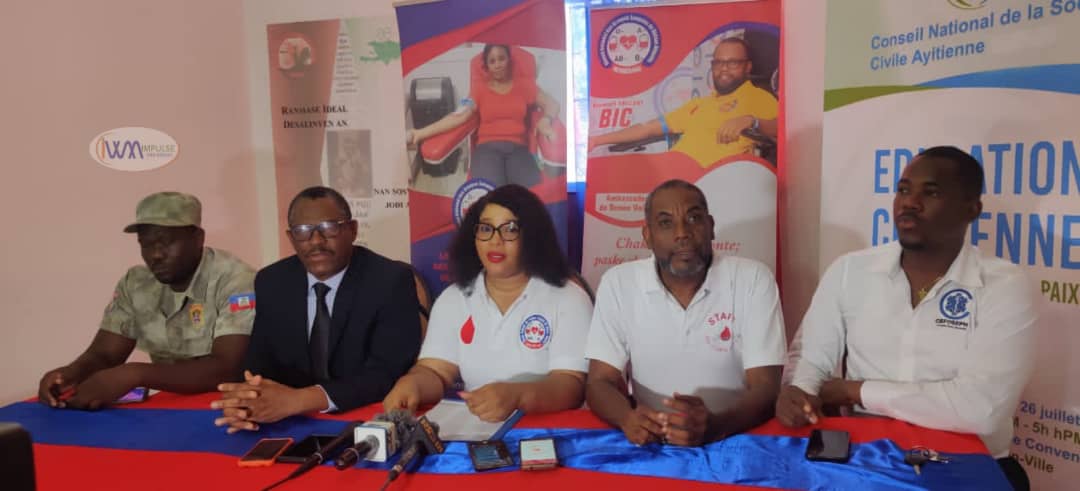 Débutée en 2019, cette année encore une fois la grande collecte de sang sera réalisée soit le 27 et le 28 mai comme d’habitude avec la collaboration de plusieurs organisations et institutions. Parmi eux, le Ministère de la Santé Publique et de la Population (MSPP) à travers le Programme National de Transfusion Sanguine (PNST), le Conseil National de la Société Civile Haitienne( CNSCA), Société de Développement des Entreprises Culturelles (SEDEC), CEFOSEPH, Justice et solidarité, la Police Communautaire, Solidarité des Femmes Haïtiennes de Journalistes (SOFEHJ), Défenseur Plus, le Syndicat National de la Police Haitienne( SYNAPOHA), ce dernier qui a emboîté le pas cette année et autres.