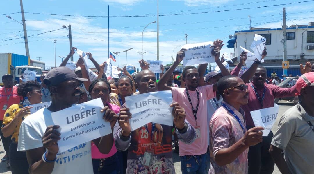 Deuxième journée de mobilisation des fonctionnaires de l’Autorité Portuaire Nationale du Nord pour continuer de dénoncer l’enlèvement samedi du directeur de l’APN Nord, Pierre Richard JOSEPH dont ils exigent sa libération.