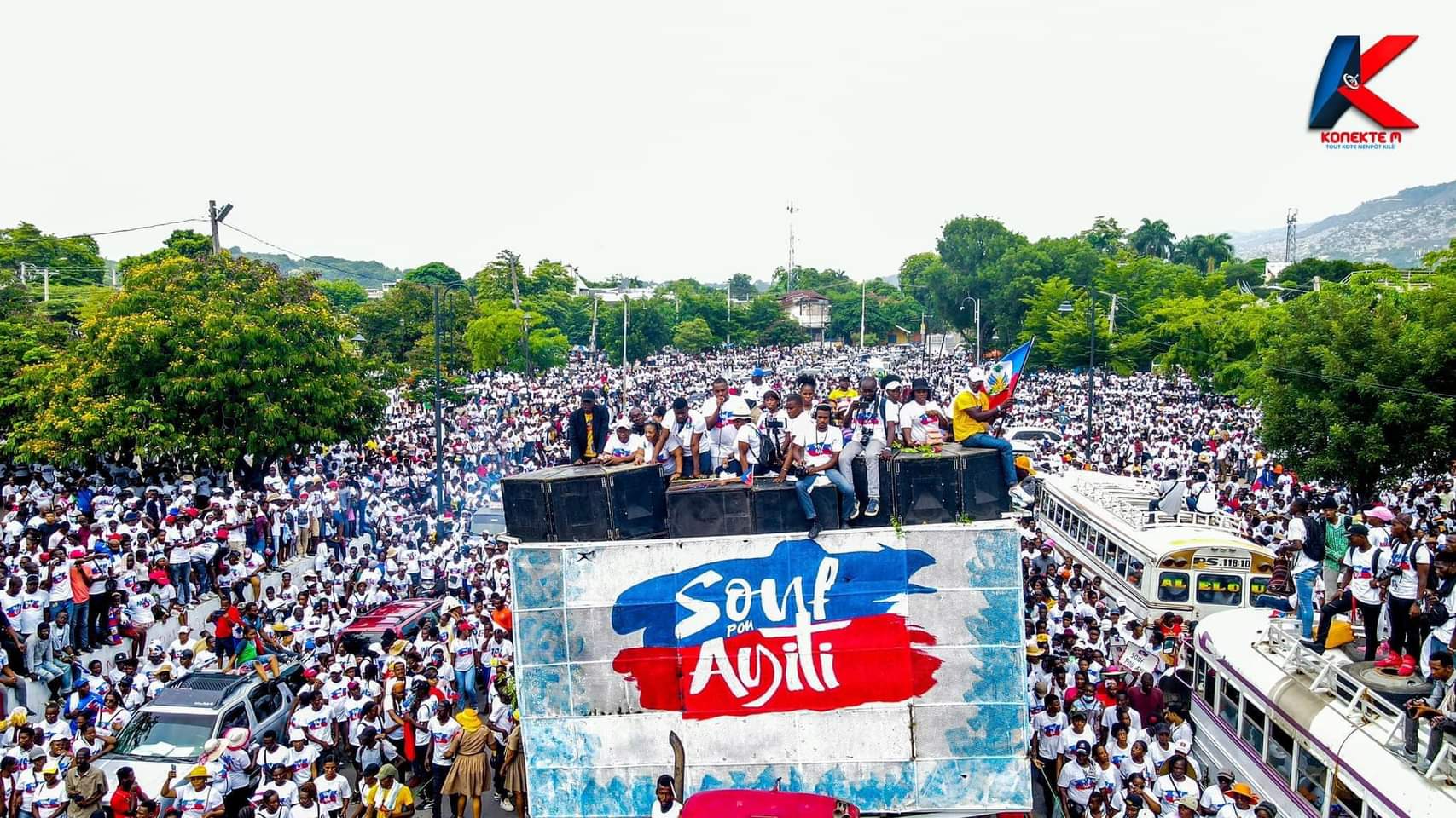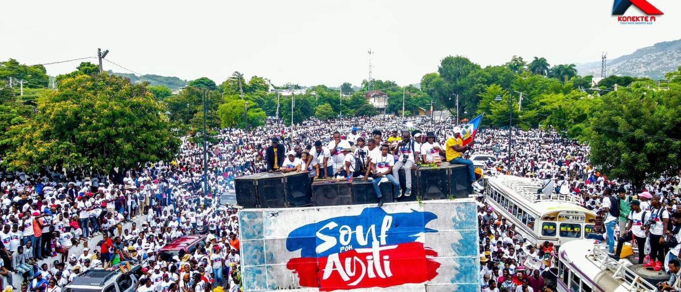 Pancartes en mains, affichant leurs différentes revendications, vêtus de leurs maillots blancs avec l’effigie du drapeau haïtien les manifestants ont parcouru plusieurs rues de la capitale ainsi que d’autres villes du pays en scandant sur tout le parcours « Souf pou Ayiti ».