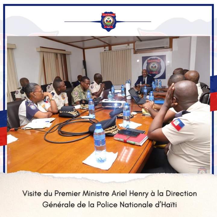 Le premier ministre Ariel Henry a effectué ce jeudi une visite surprise à la direction générale de la police nationale à Clercine. Il s’agissait pour le chef du gouvernement provisoire de s’entretenir avec les membres du Haut état major de l’institution sur la remontée des actes d’insécurité dans la capitale haïtienne.