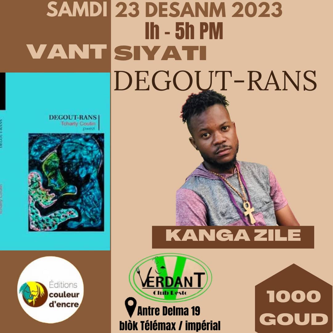 L’écrivain, journaliste Kanga Zile invite le grand public à la vente signature de son dernier titre ” Degout-rans” au Verdant Restaurant à Delmas 19, le samedi 23 décembre 2023. À travers ce nouveau livre, le jeune écrivain a passé en revue la réalité socio-politique en Haïti tout en critiquant vertement la mauvaise gouvernance du pays par les gouvernements qui se sont succédé.