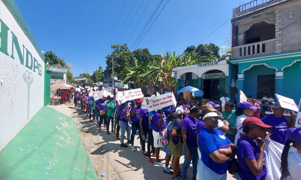 À l’occasion de la Journée internationale des droits des femmes le 8 mars 2024, l’Union pour le Développement et le Respect des Femmes (UDREFH-Femme) et le Collectif des Organisations de Femmes de la Région des Palmes (COFEREP/KOFAREP) ont organisé une marche pacifique dans les rues de Petit-Goâve.