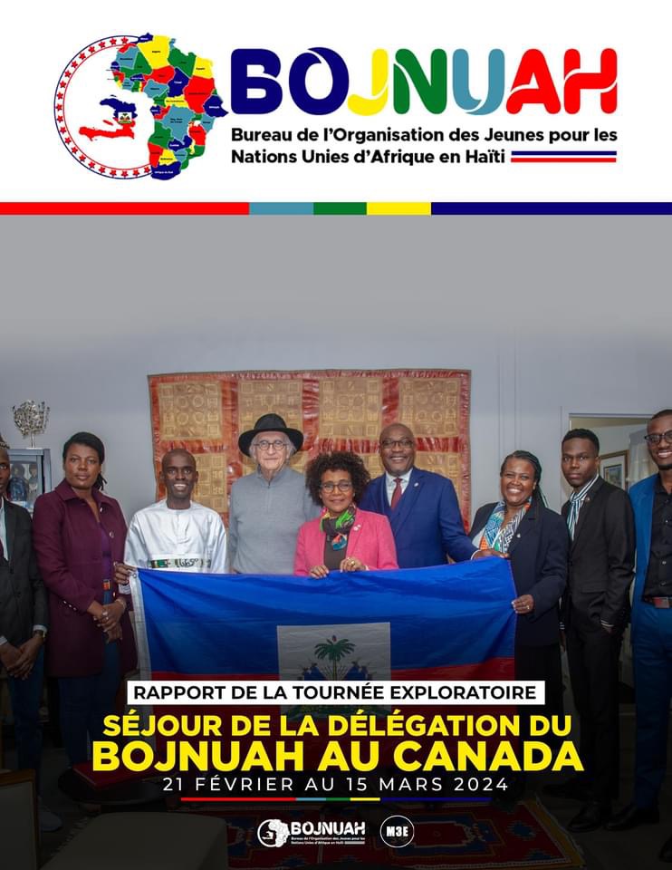 Le Bureau de l’Organisation des Jeunes pour les Nations Unies d’Afrique en Haïti (BOJNUAH) avec son représentant Monsieur Amos Cincir dit informer que la 3è édition du sommet International des Noirs qui s’est tenue à Montréal, à Ottawa, au Canada au Québec du 21 février au 15 mars 2024 fut une mission productive et enrichissante, lit-on dans une note de presse de l’Organisation.