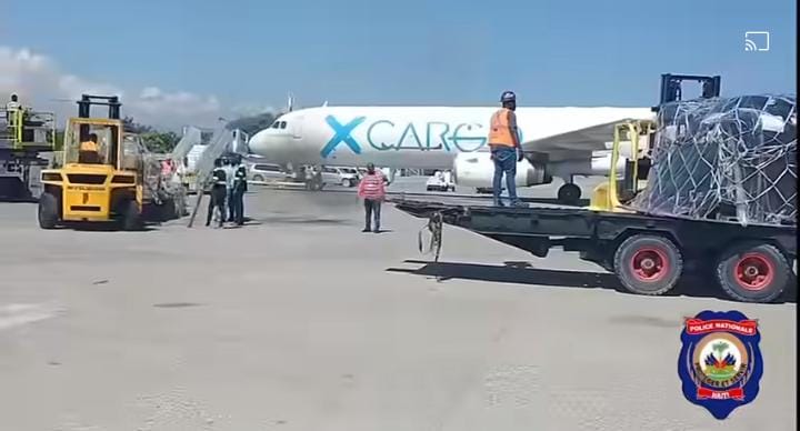 À travers une vidéo publiée sur la page Facebook de la PNH, on pouvait constaté un avion cargo entrain de débarquer ces materiels et équipements.