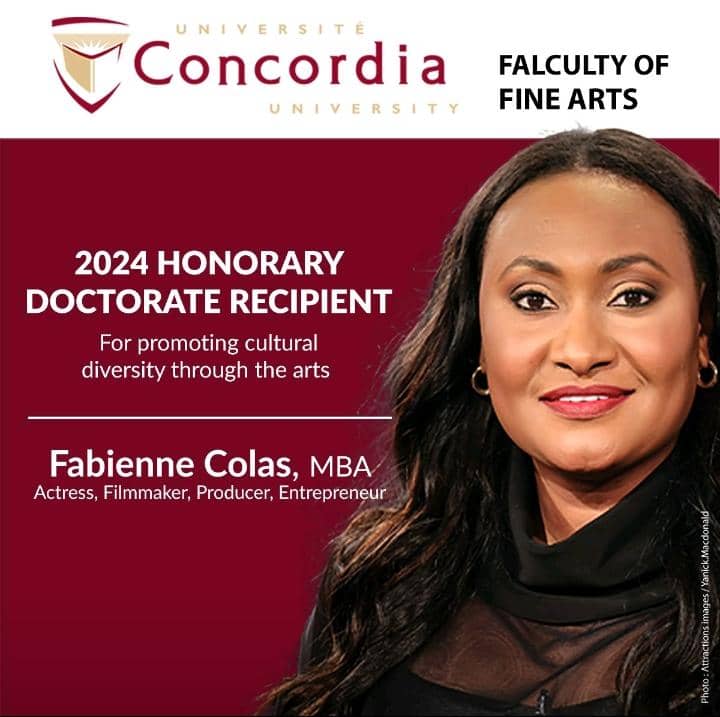 Le recteur et vice-chancelier de l’université Concordia, M. Graham Carr, explique que cette distinction est attribuée à l’actrice Fabienne Colas pour son parcours exceptionnel et son engagement à faire connaître la diversité culturelle dans le domaine des arts et du spectacle au Québec, au Canada et à l’international.