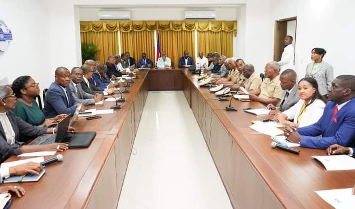 Une importante réunion a eu lieu hier mardi 23 juillet 2024 à la résidence officielle, entre le premier ministre Dr Garry Conille, des membres du gouvernement, des responsables de la police nationale et les responsables des Forces armées d’Haïti, en vue de discuter sur le renforcement de l’état d’urgence sécuritaire décrété sur 14 communes des départments de l’Ouest et de l’Artibonite.