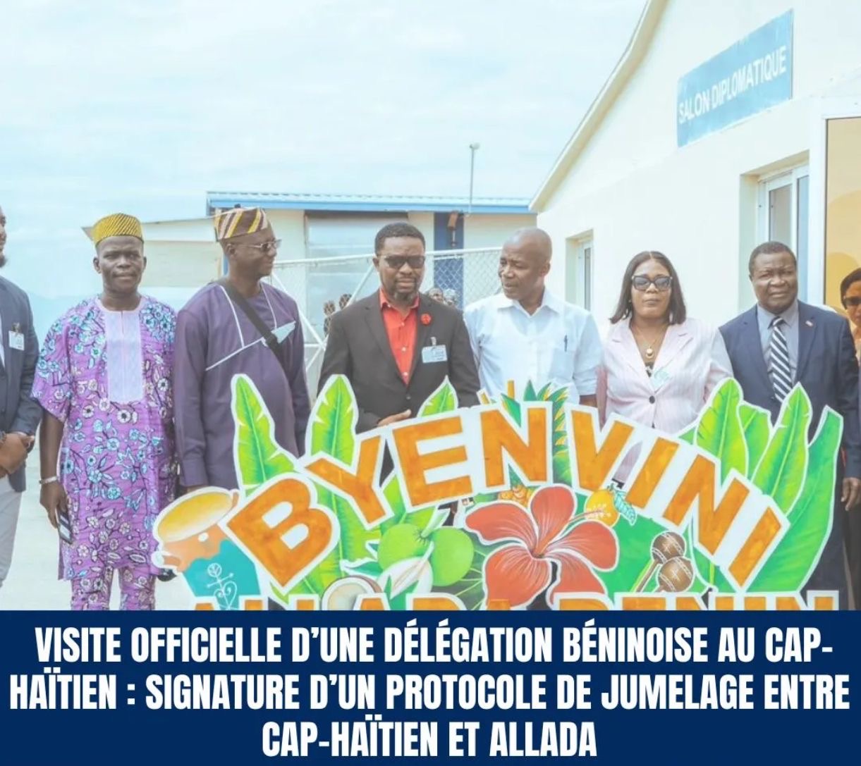 Le mardi 24 septembre 2024, une journée marquée par l’histoire et la fraternité, la ville du Cap-Haïtien a accueilli une délégation venue de la ville d’Allada, au Bénin, pour sceller un protocole de jumelage. Cet accord symbolique et stratégique, signé en grande pompe, vise à revitaliser et approfondir les relations ancestrales entre Haïti et le Bénin, tout en explorant des pistes de coopération dans les domaines de l’éducation, de l’économie et du tourisme.