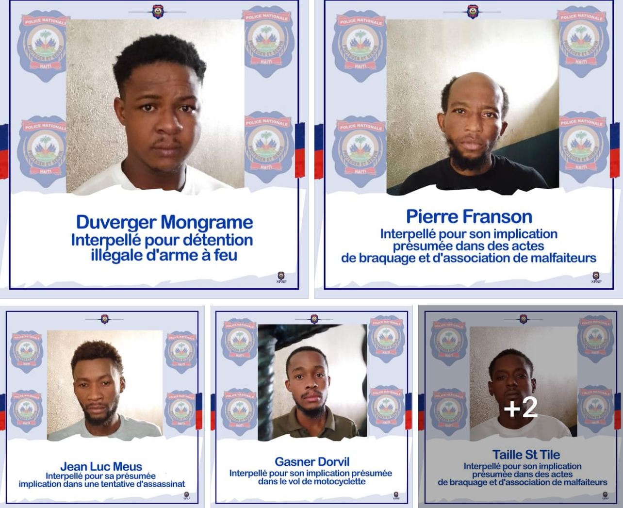La Police Nationale d’ Haïti souligne que ces individus sont placés pour l’ instant en garde à vue en attendant les suites nécessaires.