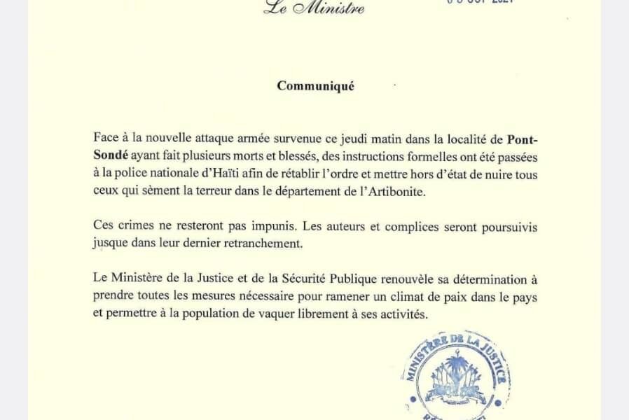 Tuerie à Pont Sondé : Le MJSP assure que la PNH a été instruite de traquer les bandits