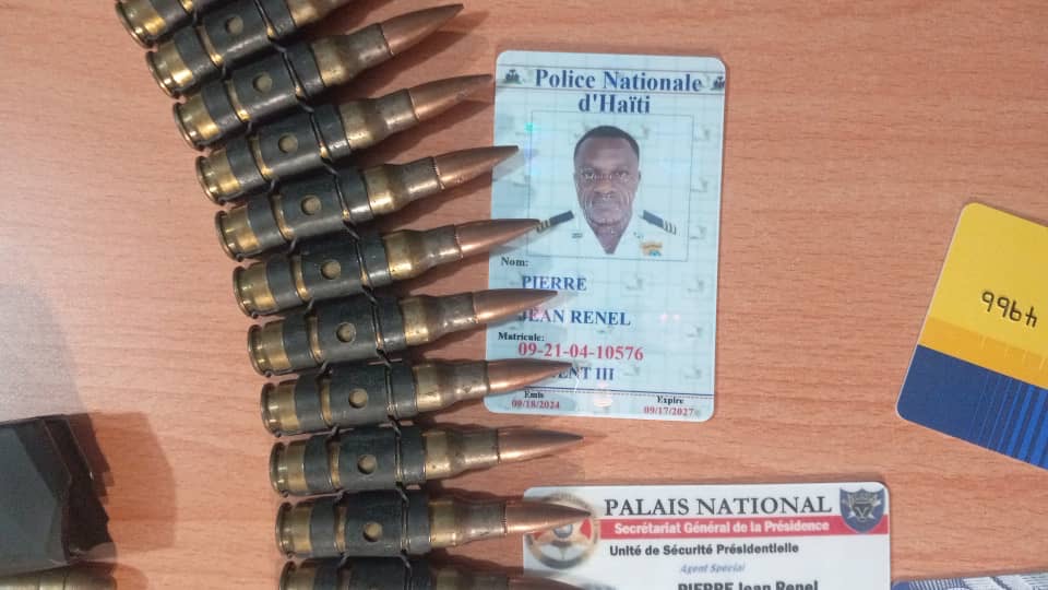 Le policier Jean Renel Pierre, issu de la 21e promotion de la PNH et affecté à l’Unité de securité présidentielle Cat team, a été arrêté le mercredi 30 octobre 2024 dans le parking d’une banque commerciale à Pétion-Ville. Il a été appréhendé en possession d’une importante quantité de munitions.
