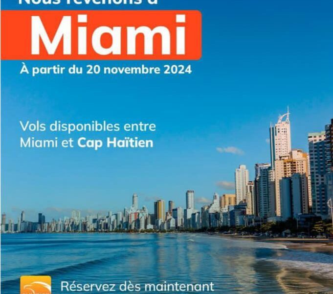 Le 15 novembre 2024~Sunrise Airways, la compagnie aérienne haïtienne en pleine expansion, annonce avec enthousiasme l’ouverture de nouvelles connexions au départ de l’aéroport international du Cap-Haïtien. Ces ajouts visent à renforcer la connectivité et à faciliter les voyages tant pour les voyageurs d’affaires que pour les touristes.