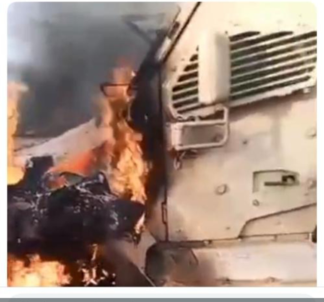A travers des images et des videos devenues virales sur la toile, on peut voir les blindés en feu et les bandits qui se réjouissent de leur action malhonnête.