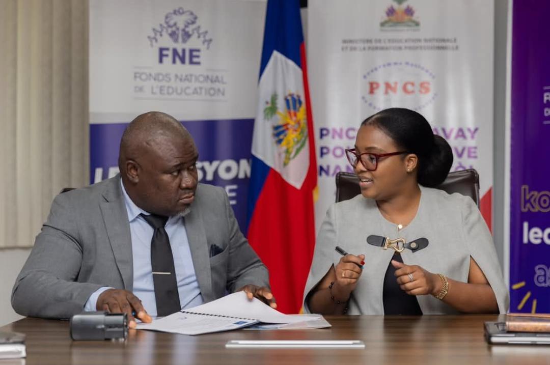 Port-au-Prince, le 15 avril 2025 — Dans un contexte marqué par une crise multidimensionnelle, le Fonds National de l’Éducation (FNE) et le Programme National de Cantines Scolaires (PNCS) ont paraphé ce mardi un protocole d’accord stratégique pour renforcer l’alimentation dans les écoles publiques d’Haïti. Cette démarche vise à assurer la distribution de repas chauds quotidiens à des milliers d’élèves à travers le pays, en priorisant les zones les plus vulnérables. L’objectif est double : améliorer les conditions d’apprentissage et lutter efficacement contre l’absentéisme scolaire.