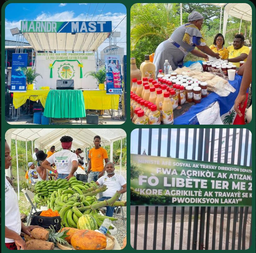 Les départements du Nord, du Nord-Ouest, du Nord-Est, de l’Artibonite, de la Grand’Anse et du Sud-Est ont vibré au rythme de foires agricoles, gastronomiques et artisanales, organisées par le MAST et le MARNDR les 1er et 2 mai. Ces événements ont permis aux agriculteurs et artisans de présenter une large gamme de produits locaux : vivres frais, mets traditionnels, plantes médicinales, animaux d’élevage et œuvres artisanales. En mettant l’accent sur la production nationale et le savoir-faire des travailleurs haïtiens, ces manifestations ont renforcé le lien entre les communautés et contribué à raviver la fierté locale.