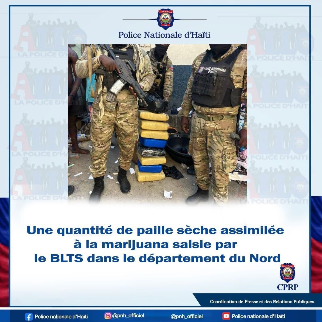 Le Bureau de Lutte contre le Trafic de Drogues (BLTS) a mené une opération importante dans la ville de Cap-Haïtien, visant des personnes soupçonnées de trafic de drogue. Dans le quartier de “La Fossette”, les officiers ont fouillé le domicile de Jacques GARÇON, Rivaldo LOUIS surnommé Pappadap, et Renos PIERRE, connu sous le nom de Président Renos, le dimanche 11 mai 2025. Cette opération a conduit à la découverte de 35,5 kg de matières végétales seches, identifiées provisoirement comme étant de la marijuana.