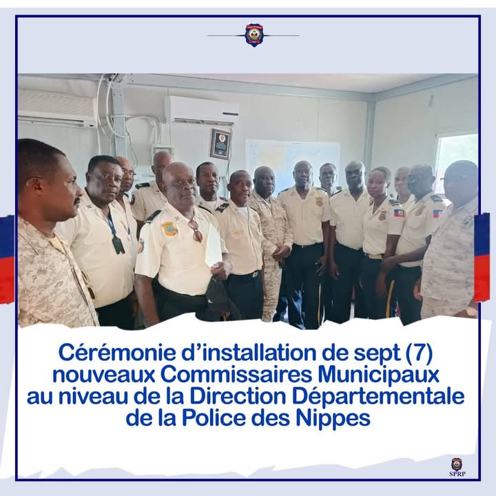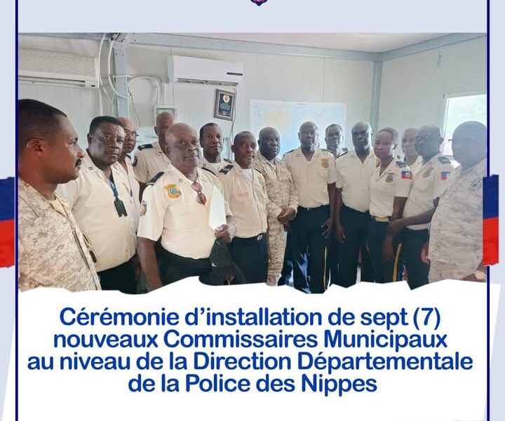 La Direction Départementale de la Police des Nippes a procédé, mardi 13 mai 2025, à l’installation de sept nouveaux Commissaires Municipaux, tous issus de la huitième cohorte de l’Académie Nationale de Police (ANP). Cette initiative s’inscrit dans le cadre du plan d’action du Directeur Général a.i. de la Police Nationale d’Haïti (PNH), Rameau Normil, visant à renforcer l’efficacité et le professionnalisme de l’institution policière.