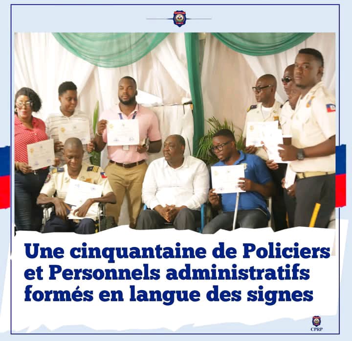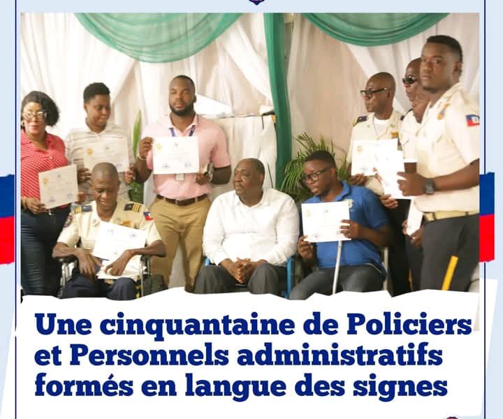 Du 26 au 30 mai 2025, une cinquantaine de policiers et de membres du personnel administratif de la Police Nationale d’Haïti (PNH) ont suivi une formation en langue des signes au local de la Direction Bien-Être de l’institution, situé à Clercine 8, commune de Tabarre. Cette initiative, fruit d’une collaboration entre la Direction Bien-Être de la PNH et le Bureau du Secrétaire d’État à l’Intégration des Personnes Handicapées (BSEIPH), vise à renforcer les capacités du personnel policier en matière de communication avec les personnes sourdes ou malentendantes.
