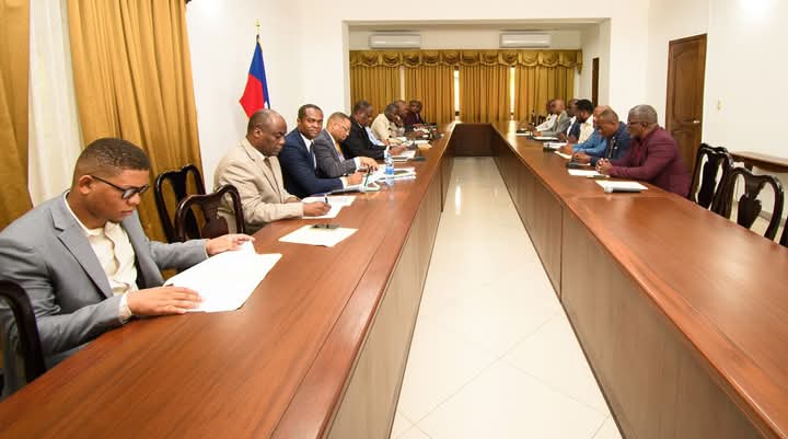 Le conseiller-président Louis Gérald Gilles a présidé, le mardi 3 juin 2025, une réunion à la Villa d’Accueil avec les représentants de la Commission nationale de subvention pétrolière ciblée. Étaient présents : le ministre de l’Économie et des Finances, Alfred Métellus ; le ministre du Commerce et de l’Industrie, James Monazard ; le directeur général de la DGI, Romuald Petit ; le directeur général de l’OAVCT, Pierre Raymond André ; ainsi que des représentants syndicaux tels que Mackenson Versailles, Rémy Sanozier, Jacques Anderson Desroches, Miguel Jeannot, Jean Philippe Marcelin, Georges Nazaire et Jean Nerva Siméon.