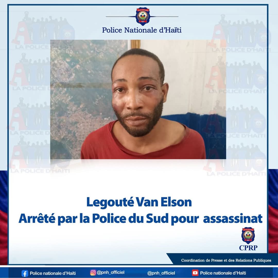 La Police du Sud a appréhendé mardi 3 juin 2025 le nommé Van Elson Legouté, suspecté d’avoir assassiné son propre oncle Salomon Legouté, à Misene, une localité de la commune des Cayes.