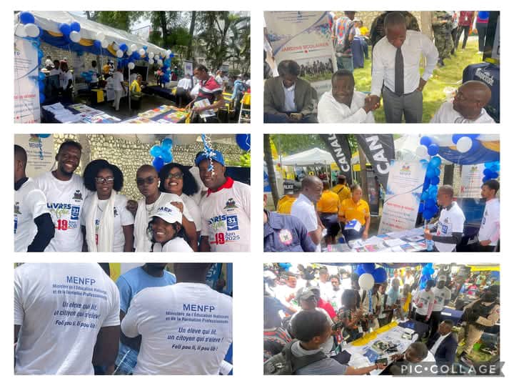Pétion-Ville, 19 juin 2025 — Le Ministère de l’Éducation Nationale et de la Formation Professionnelle (MENFP) a brillamment participé à la 31e édition de « Livres en Folie », tenue jeudi à l’École Saint-Joseph des Frères de l’Instruction Chrétienne. Cette présence marque une fois de plus l’engagement du MENFP à faire de cette foire du livre un espace de diffusion du savoir, de dialogue éducatif et de valorisation de la production pédagogique nationale.