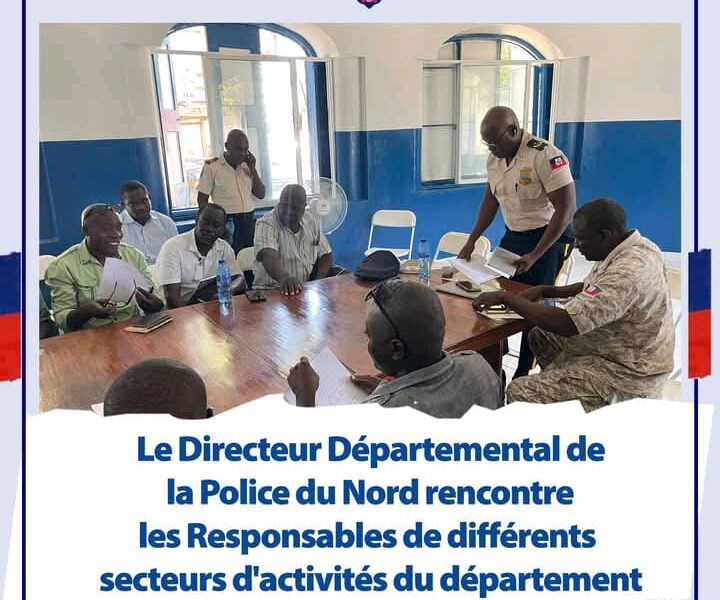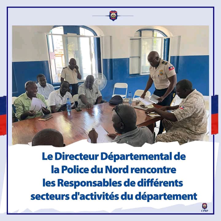Cap-Haïtien, 3 juillet 2025.- Dans une dynamique de prévention et de coordination sécuritaire, le Commissaire Divisionnaire Sem CALIXTE, Directeur Départemental de la Police du Nord (DDN), a entamé une série de rencontres stratégiques avec les responsables des principaux secteurs d’activités du département. Parmi les participants figurent des dirigeants de compagnies de sécurité, des responsables d’hôtels, ainsi que des propriétaires de restaurants et d’espaces de divertissement.