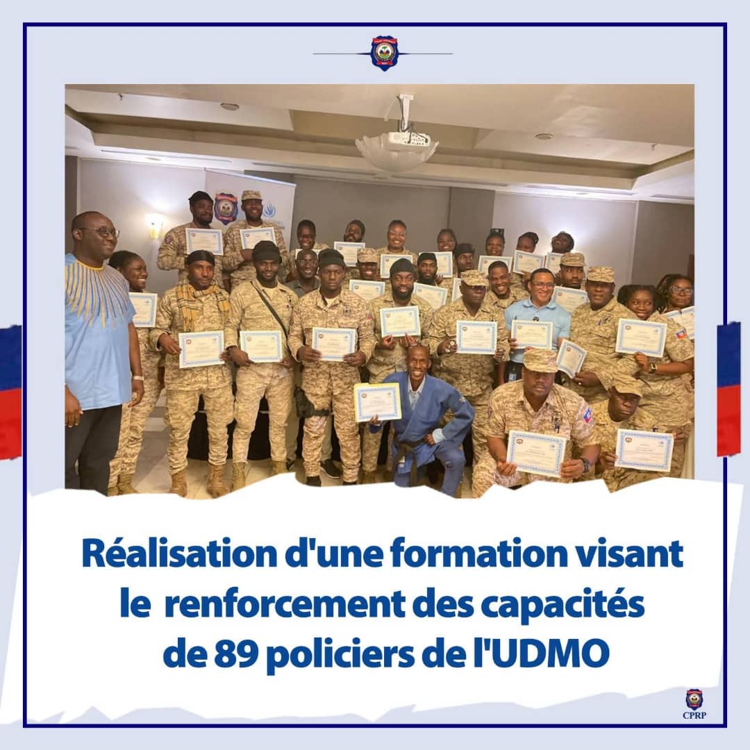 Dans le cadre d’un programme de formation continue, 89 policiers de l’Unité Départementale de Maintien de l’Ordre (UDMO) de la région Ouest-2 ont bénéficié récemment de plusieurs sessions de renforcement de capacités, a annoncé la Police Nationale d’Haïti (PNH). Ces formations visent à améliorer la performance opérationnelle et le professionnalisme de cette unité spécialisée, notamment dans la gestion des troubles à l’ordre public.