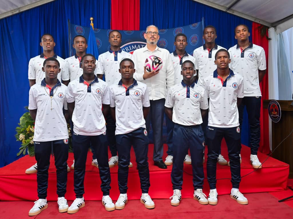 La cérémonie s’est tenue à la Primature, en présence de plusieurs hauts responsables de l’État, dont la ministre de la Jeunesse, des Sports et de l’Action Civique, Niola Lynn Sarah Octavius, le ministre de l’Économie et des Finances, Alfred Fils Métellus, ainsi que des représentants de la Fédération Haïtienne de Football. Les jeunes joueurs, accompagnés de leur sélectionneur Eddy César et de leur staff technique, ont reçu ce soutien dans une ambiance de fierté nationale.