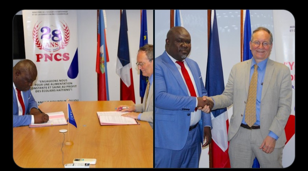 Dans le cadre de son engagement continu envers l’éducation et la sécurité alimentaire en Haïti, la France vient de signer le lundi 25 août 2025 une nouvelle convention de financement avec le Programme national de cantines scolaires (PNCS), pour un montant de 2,5 millions d’euros. L’accord a été paraphé par le Conseiller de coopération et d’action culturelle de l’ambassade de France, Vincent Hommeril, et le Coordonnateur général du PNCS, Kevenot Dorvil.