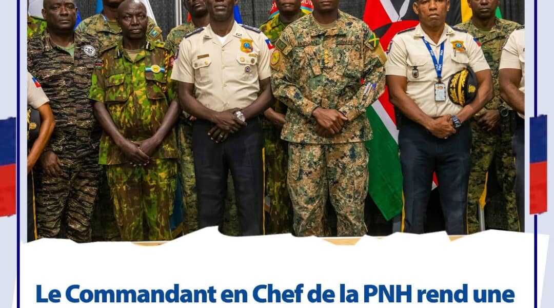 Le directeur Général de la Police Nationale d’Haïti, André Jonas Vladimir Paraison, accompagné de plusieurs membres du Haut commandement de la PNH, a effectué ce jeudi 4 septembre une visite à la base de la Mission multinationale d’appui à la sécurité (MMAS). Ce, pour présenter ses sympathies au contingent kenyan touché par le décès d’un policier de la mission dans un tragique accident de la route le 31 août dernier dans la commune de Petion-ville.