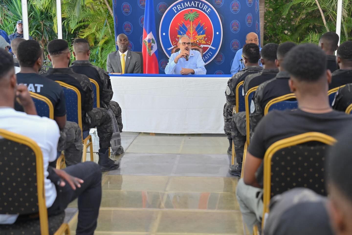 Le Premier ministre Alix Didier Fils-Aimé a reçu, lundi 29 décembre, à la Primature, le Directeur général de la Police nationale d’Haïti (PNH), Jonas Vladimir Paraison, accompagné d’une délégation composée notamment de membres des unités spécialisées, dont la SWAT. Cette rencontre s’inscrit dans la continuité de la visite effectuée la veille par le chef du gouvernement à la Direction générale de la PNH à Clercine. Les échanges ont porté sur les priorités opérationnelles, les besoins urgents des agents sur le terrain et les mesures à adopter pour améliorer leurs conditions de travail dans un contexte sécuritaire de plus en plus tendu.