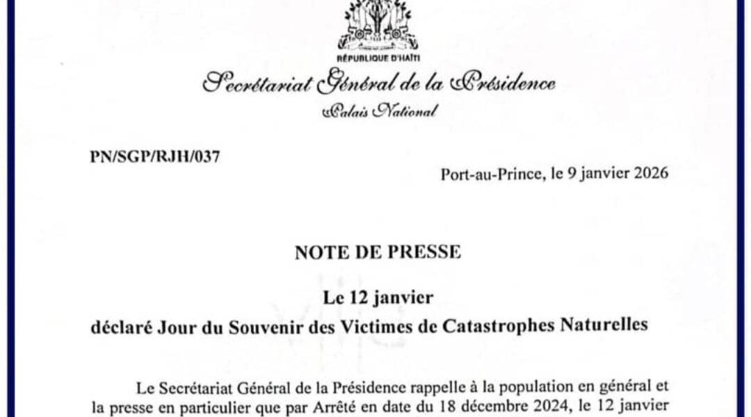 Le 12 janvier 2026 ramènera le 16ème anniversaire du séisme dévastateur ayant frappé Haïti en 2010. En ce sens, le gouvernement haitien a décrété cette date : ” Jour du Souvenir des Victimes de Catastrophes Naturelles”.
