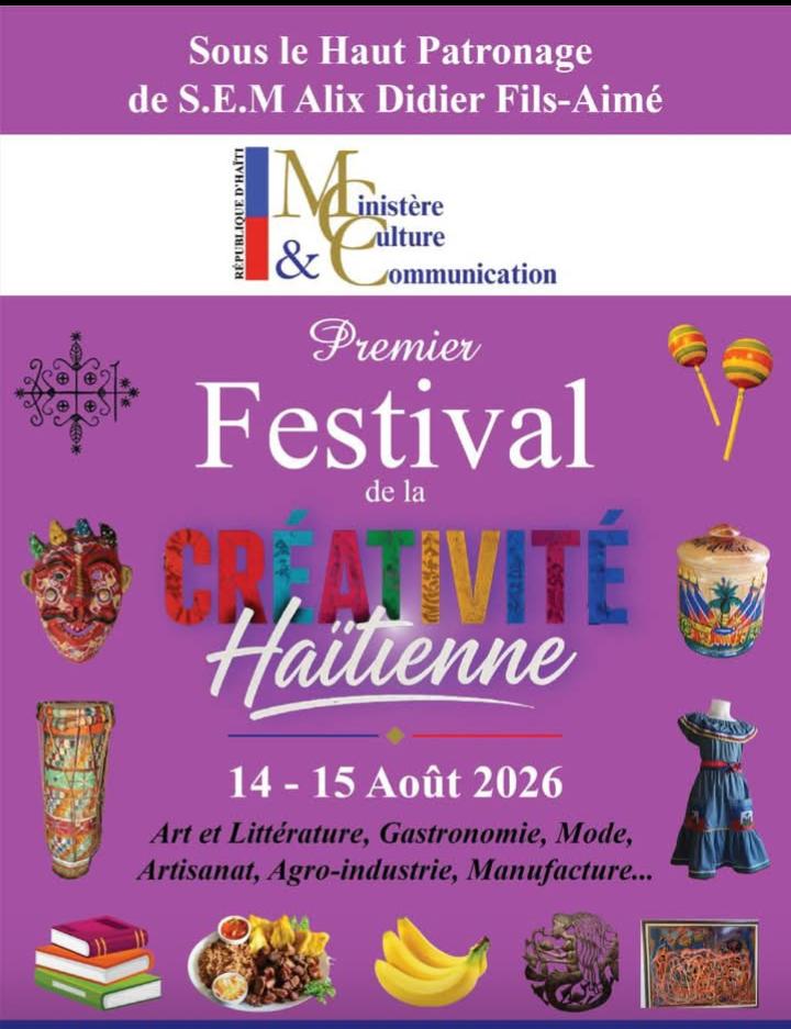 Le Ministère de la Culture et de la Communication (MCC) annonce l’organisation du tout premier Festival de la Créativité Haïtienne, qui se tiendra les 14 et 15 août 2026, sous le haut patronage du Premier ministre Alix Didier Fils-Aimé. À travers cette initiative, les autorités entendent mettre en avant le dynamisme du secteur créatif haïtien et offrir une vitrine nationale aux talents locaux.
