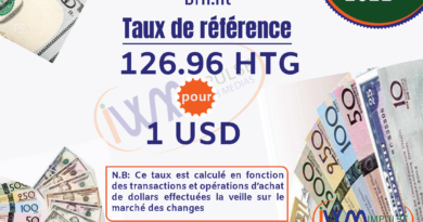 Impulse Web Medias vous présente chaque matin, le taux de référence de la Banque de la République d’Haiti (BRH), les taux à l’achat et à la vente dans les banques commerciales et sur le marché informel pour mieux comprendre les opérations de change.