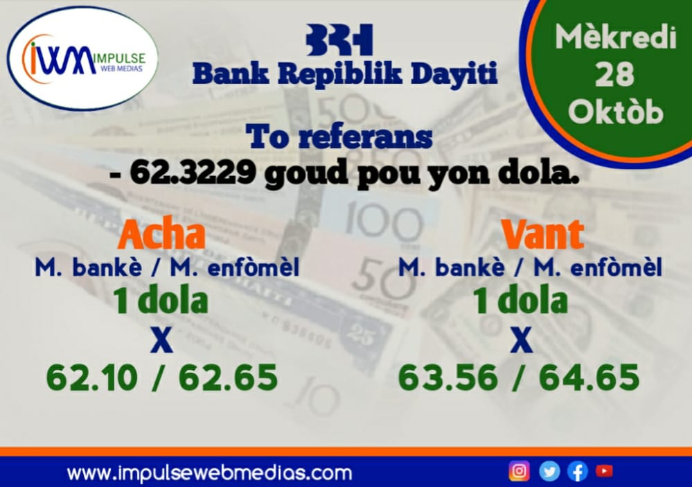 To referans pou mèkredi 28 oktòb la se 62, 32 goud pou yon dola ameriken.